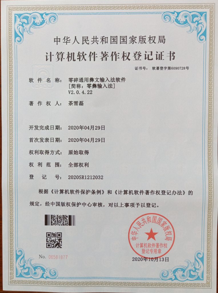 零彝输入法,原名零碎通用彝文输入法,是一个专门研究彝文输入、彝文编码方案设计、输入输出转换、彝文化传承等彝文信息化方面的软件,已陆续开发出零彝系列作品,包括但不限于零彝输入法(Android版)、零彝输入法(Windows版)、零彝输入法(多多版)、零彝畅聊、零彝社区、零彝词典等,其核心代码已取得相关证书,软件证书编号为:软著登记第6090728号;其中各软件自带的两款通用彝文字体(也已取得相应版权证书):零碎通用彝文(黑)、零碎通用彝文(圆),后续我们将会继续维护、完善各软件功能,并持续开发更美观、大方的彝文字体,让彝文更好的传承彝文化,彰显文化魅力,尽情期待。